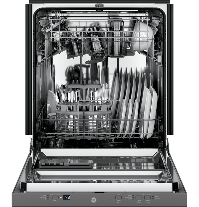 The GE GDT225SSLSS ensures comprehensive cleaning with its multi-level wash system, delivering water coverage from every angle for superior results.