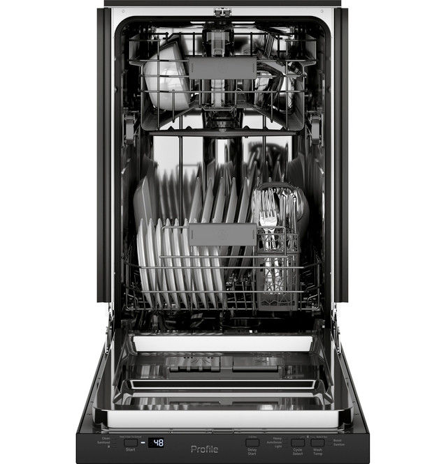 The GE PDT145SGLBB uses multiple spray arms to ensure thorough coverage and superior cleaning results on every load.
